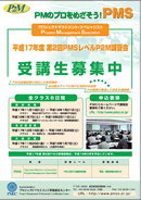| 平成17年度 第2回PMS講習会が、11月19日(土)~2月11日(土)の全8日間実施されます。今回は東京会場・名古屋会場・大阪会場で実施されます。 |
