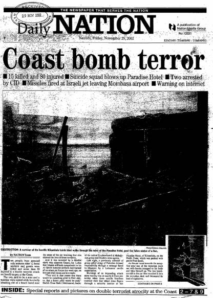 2002年11月、我々がアフリカのとある港湾都市で建設を進めていた石油基地の現場近郊で、アルカイダ構成員によるとみられる同時テロが発生しました。 イスラエル系ホテルの爆破事件とイスラエル機撃墜未遂事件でしたが、特に後者においてはミサイル発射場所が我々の現場事務所から100メートルほどしか離れておらず、現地スタッフの多くは 発射されたミサイル2発が轟音と伴にイスラエル機すれすれに飛んでいく模様を目撃しており、プロジェクトチーム内に大きな衝撃が走りました。 当時はまだ日本企業がテロの標的になる危険は少ないと考えられていましたが、米国9・11事件から1年余りしか経っておらず、しかもこの建設プロジェクトには英国企業も関与しておりましたので、今後テロの巻き添えになる危険性は排除できませんでした。 その約半年後、地元警察の発表では指名手配されたアルカイダの容疑者が逃亡していた国外から舞い戻り、市内に潜伏中との情報もあり、これに伴い英国航空が同国の発着便フライトを全面的にストップさせる等、事件発生後もテロ発生の危険レベルが下がることは殆どありませんでした。