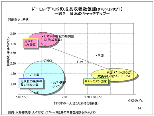 上記第2図は1870年から1995年日本の成長率2.7%で成長率1.8%の英国、オーストラリアを凌駕して、画期的な貿易をしている。
