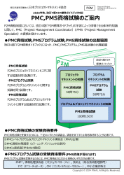 P2M概要について ・開発の背景 ・特長・活用 P2M資格試験について P2M資格試験 ・PMCe資格 ・PMC資格試験 ・PMSプログラム試験 ・PMS資格試験 ・PMR資格試験 P2M資格試験合格者推移 PMS試験練習問題 CPU申請 ・P2M資格制度について ・PMS CPU申請 ・PMR CPU申請