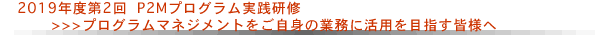 | P2Mプログラム実践研修は(2日間コース)とはP2M実践力向上を目的とする講座で、次の特徴があります。 |