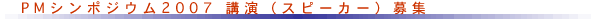 国内最大規模を誇るPMシンポジウムを2007年は8月30日(木)から 31日(金)にわたり開催致します。今回のシンポジウムも引き続き